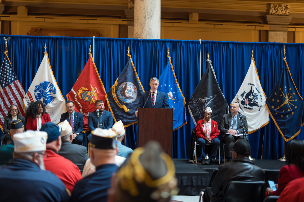 Senator Banks: “Indiana is home to over 400,000 veterans. Since the Indian Wars and the Civil War, there have been 99 Hoosier Medal of Honor winners. We’re proud of our veterans’ legacy of service. You can see it in our war memorials, all around the city. You can also see our pride in the military all around the state…”