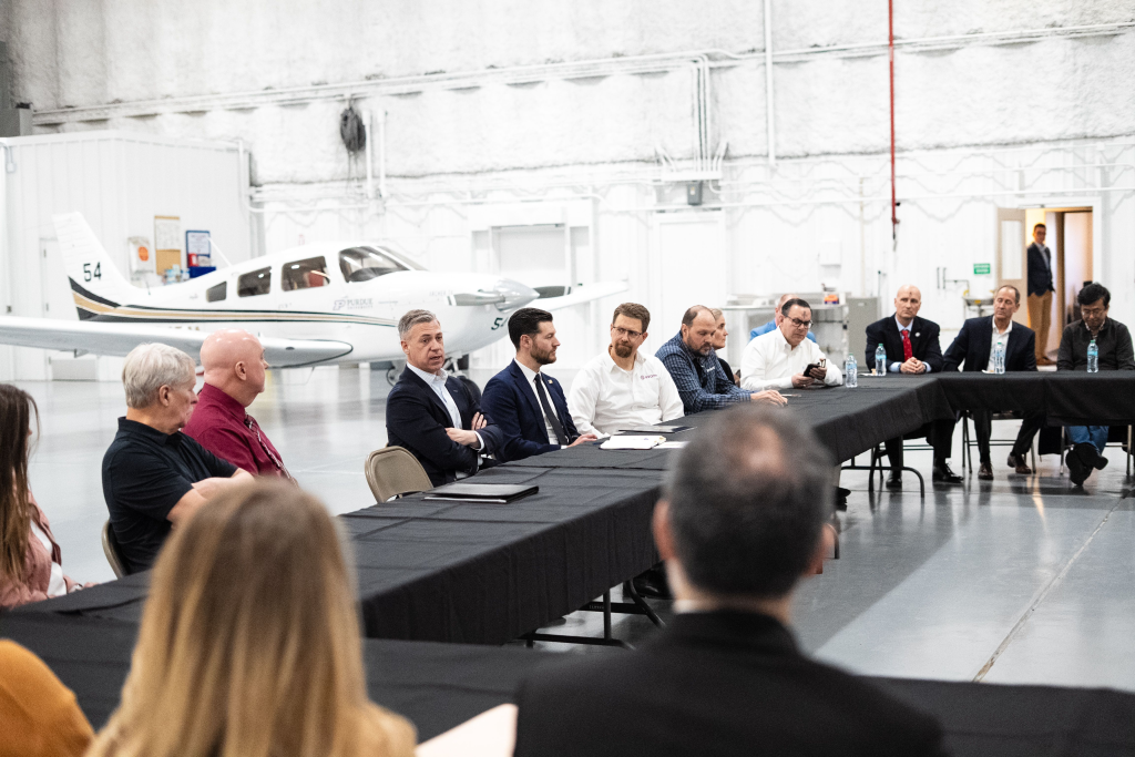 While on campus, Senator Banks toured the Low Research Lab and hosted a community leaders roundtable. The roundtable included mayors, bipartisan state representatives, county council members, and business leaders from across West Lafayette and Tippecanoe and White counties.